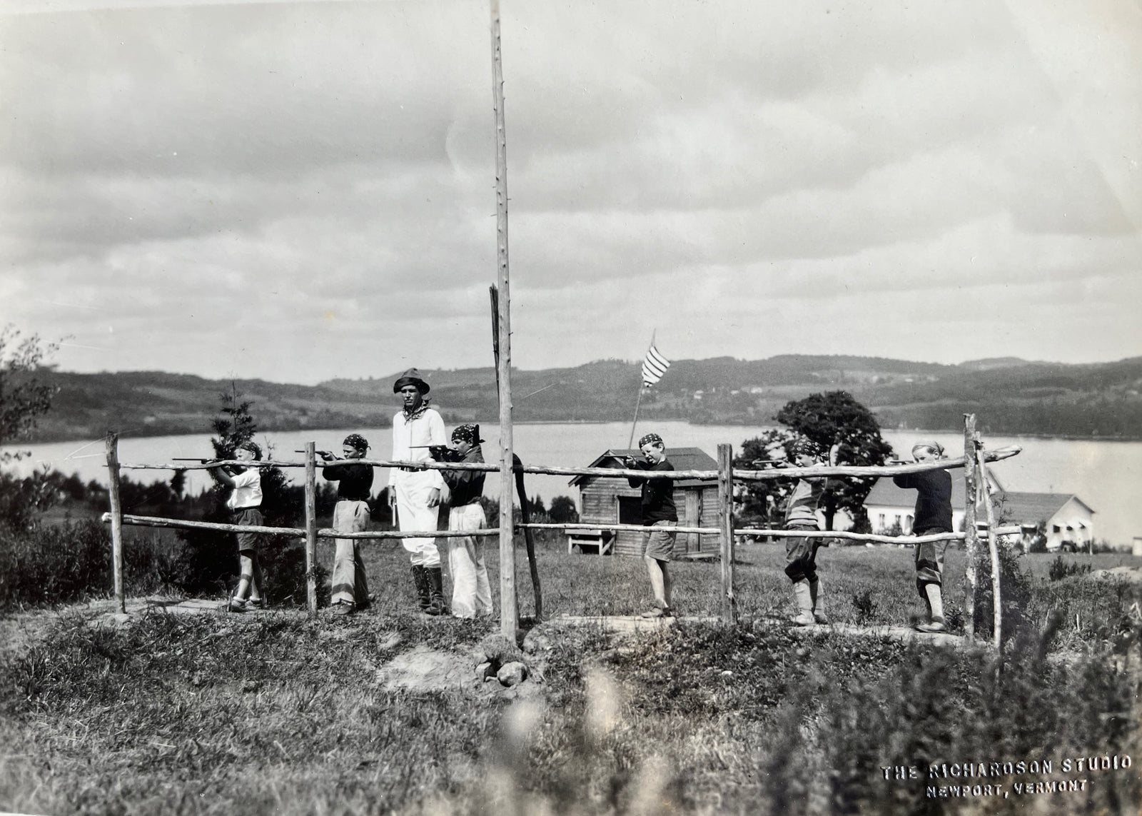 Our farm was the former Wayeeses Boys Camp that operated from 1923 until World War II. The description of the camp in the brochure describes it as 320 acres of timberland on the side of Mt. Elon. "The wooded part of camp includes sections heavily timbered with spruce, cedar and fir as well as a large maple-sugar woods." The camp included a lodge which contained the dining room, kitchen, recreation room, workshop and office; screened cabins; tennis courts; rifle and archery ranges; and 150 foot swimming and boat pier.