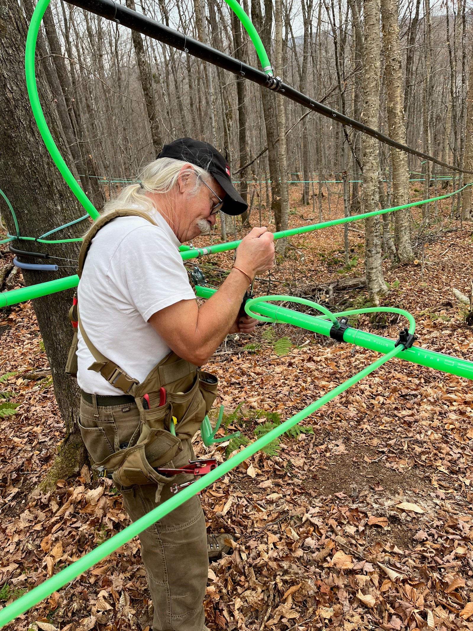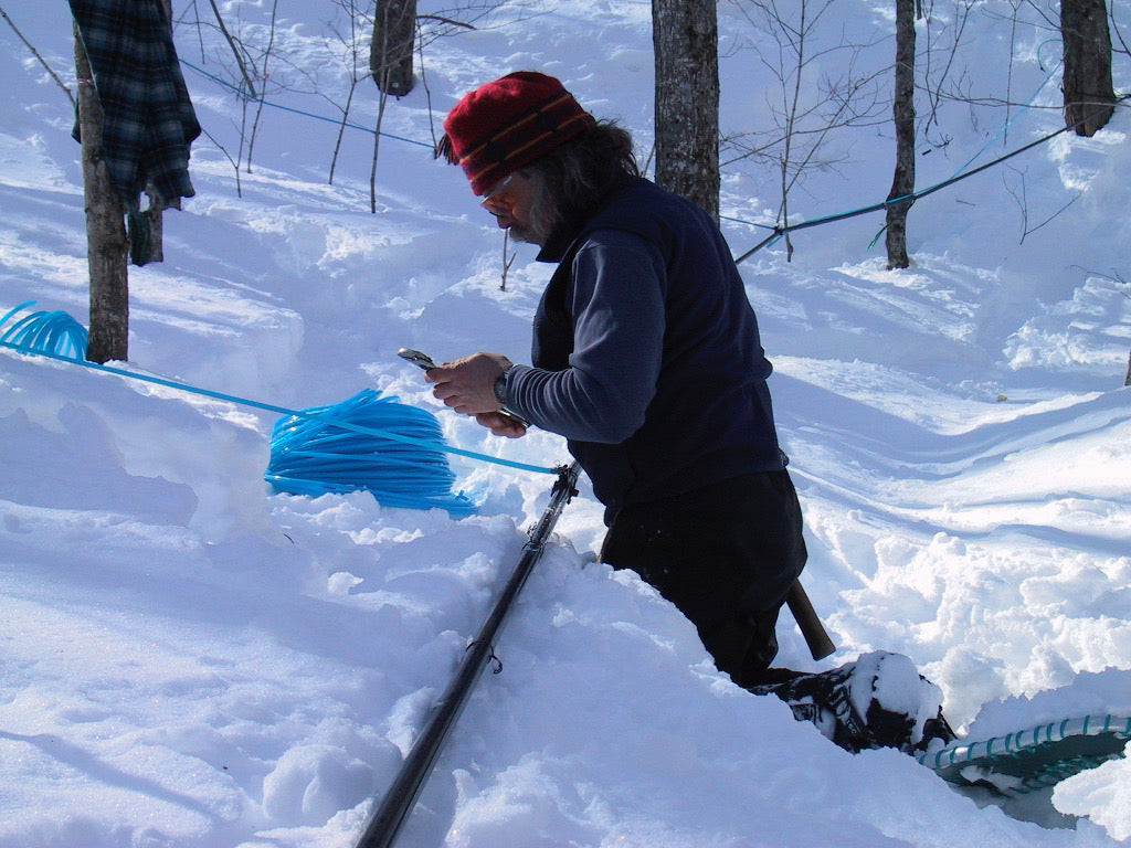 Jim installed pipeline and started tapping trees on the slopes of Mt. Elon in 1978. Donna joined him in 1987. Our current sugarhouse was built in 1989. You can see from the photos how our pipeline system has evolved and how the trees have grown over the years.